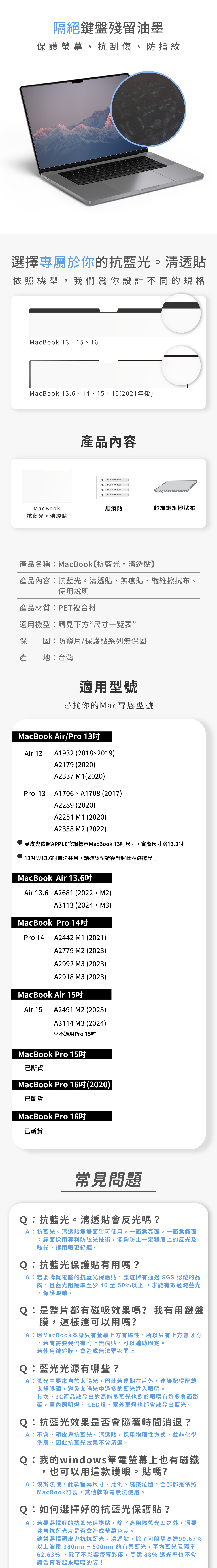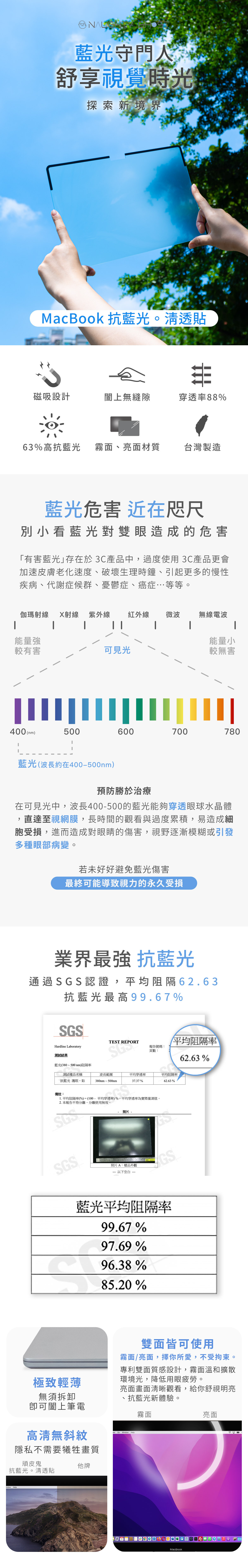 MacBook【抗藍光。清透貼】