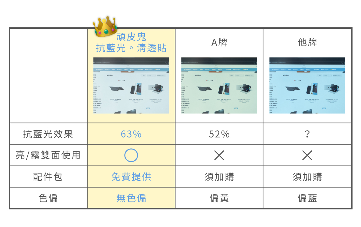 「最接近原色的抗藍光片,抗藍光。清透貼」