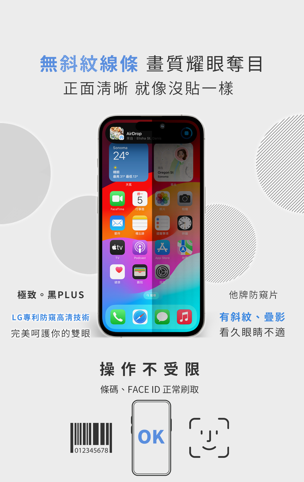 🔷 正面清晰無斜紋,條碼、Face ID正常刷取