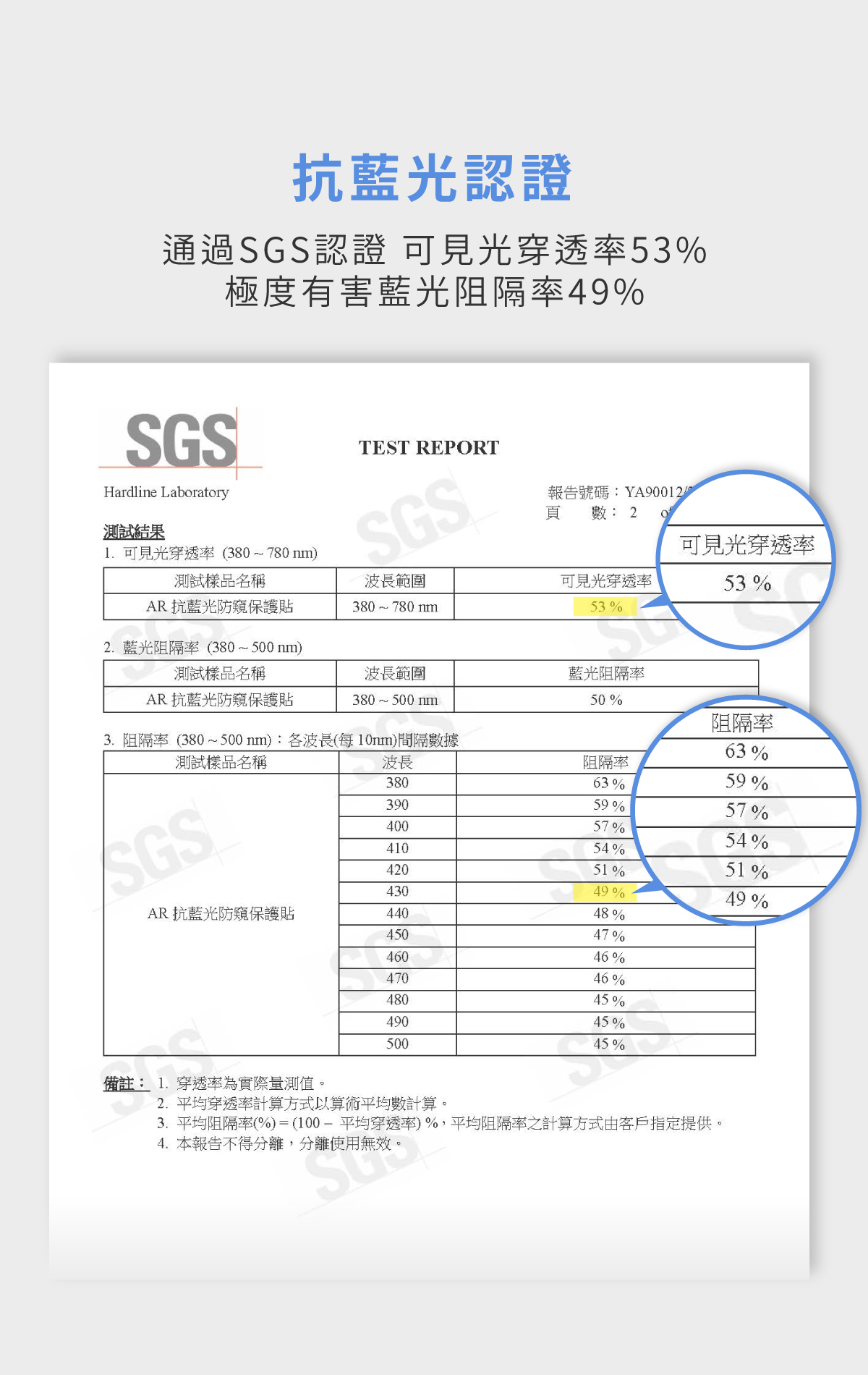 🔷 SGS測試49%抗有害藍光