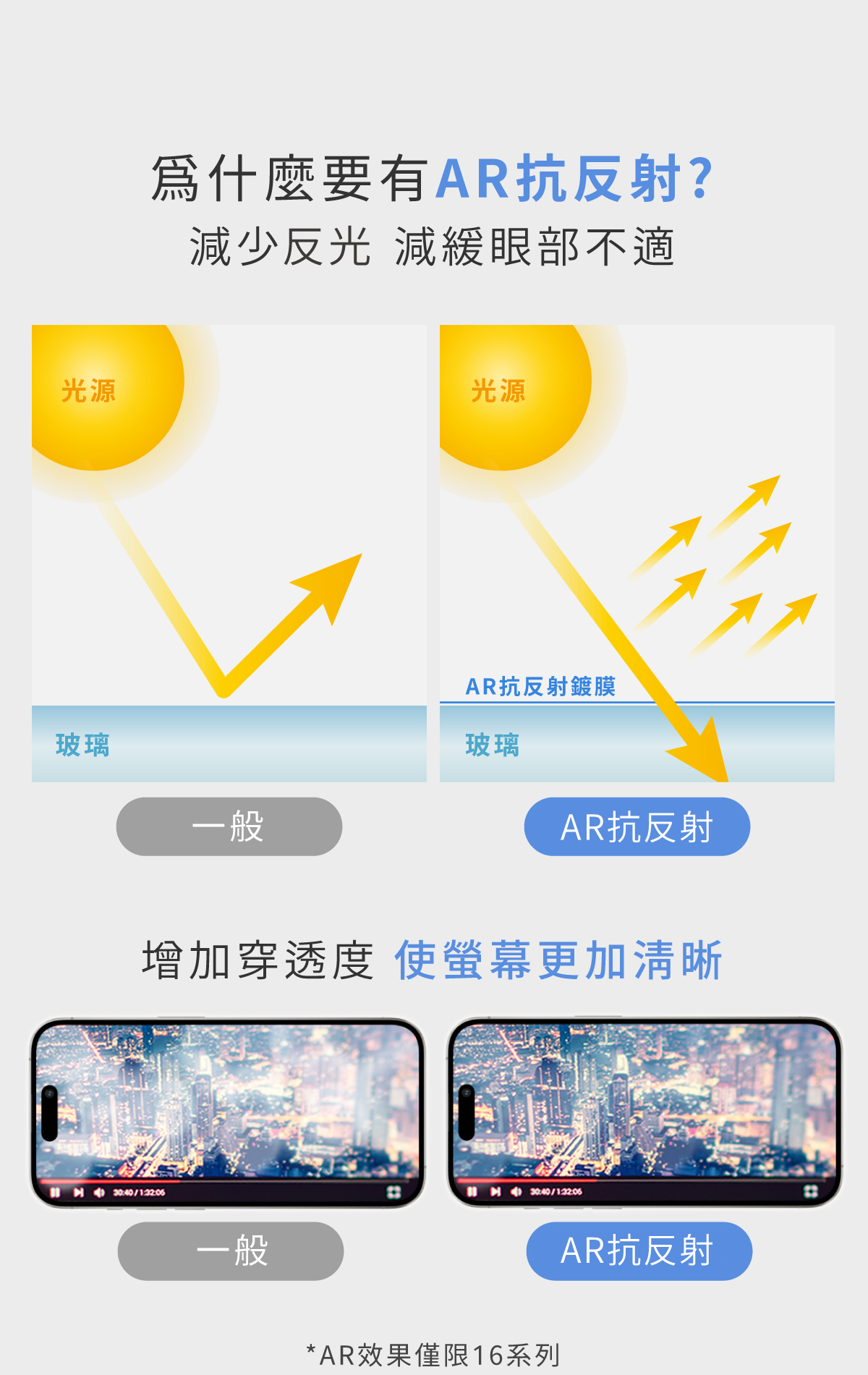 🔷 AR 抗反射表面 (僅限16系列)