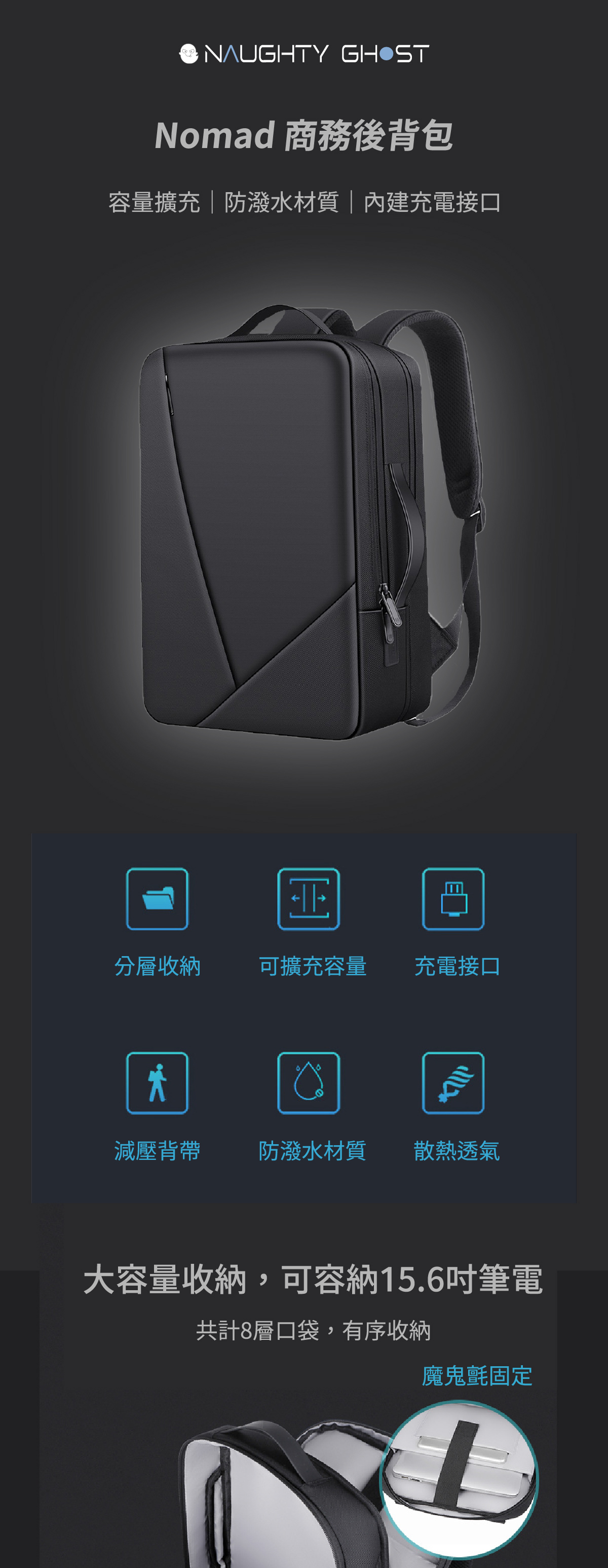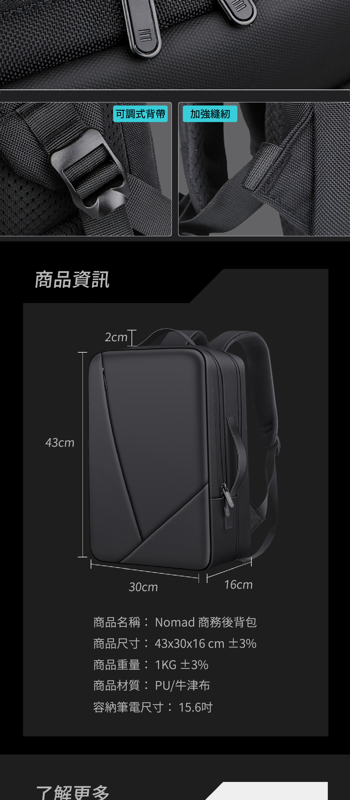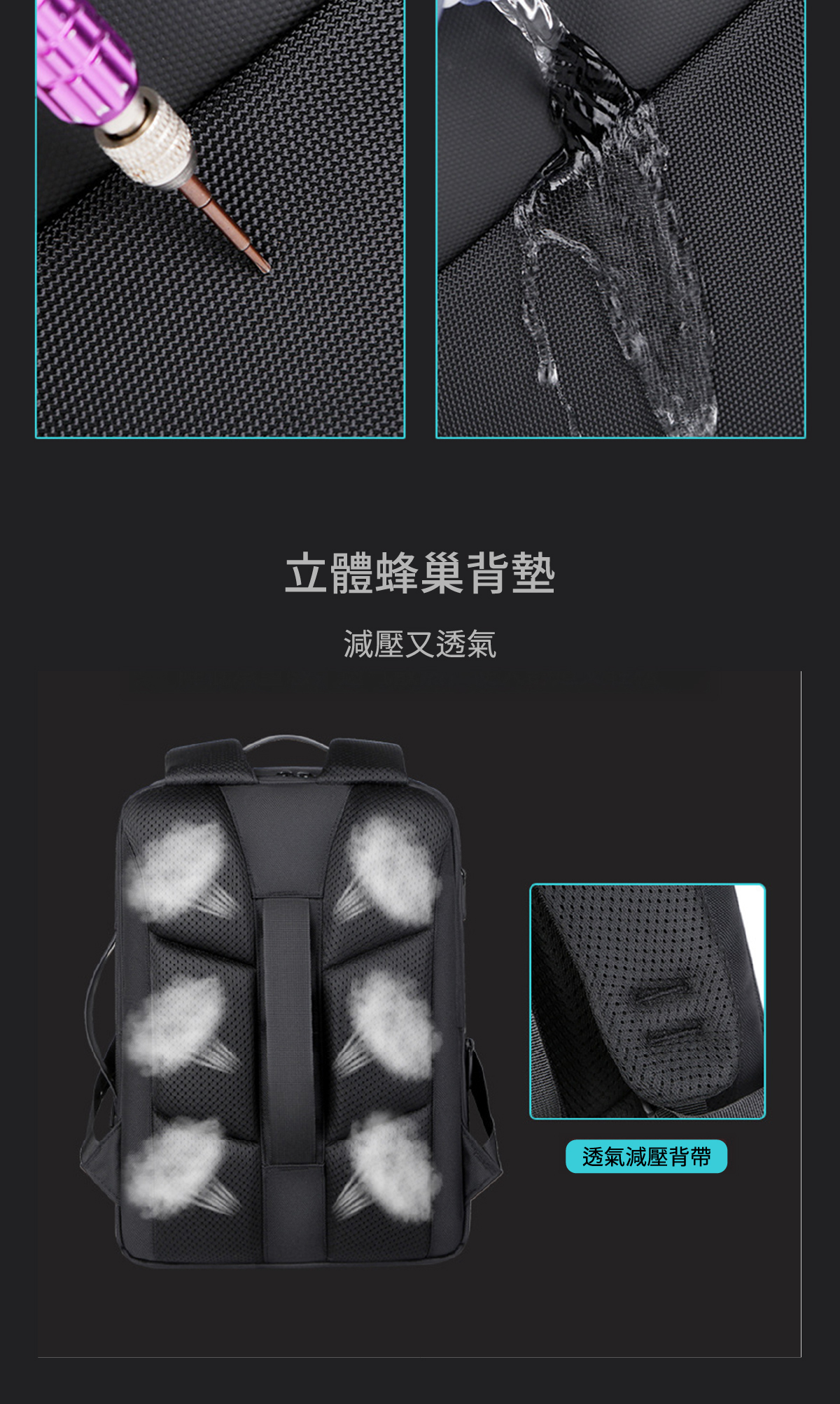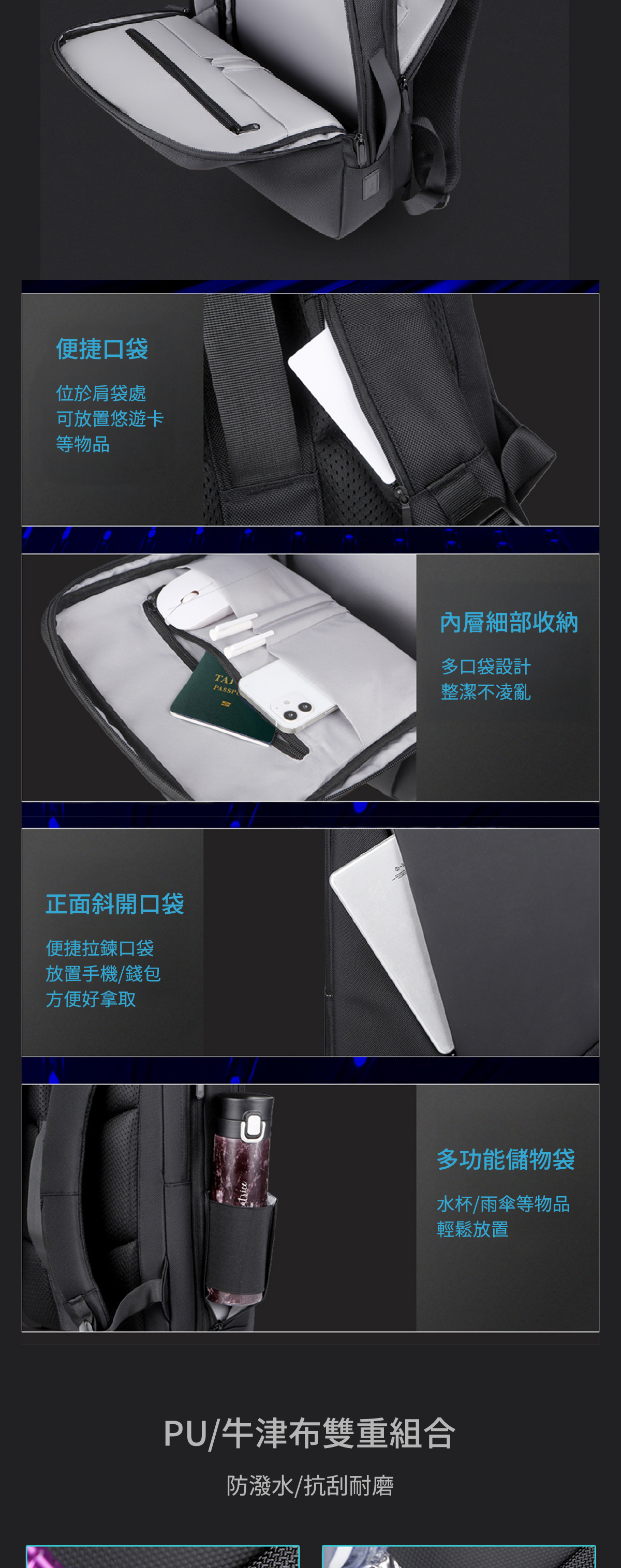 🔷 防潑水牛津布/PU材質,有效防護電腦/物品